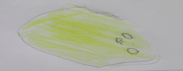 | "I saw the eels. They live in the water in a tank. They are long and skinny." Picture and dictated story by Kura |